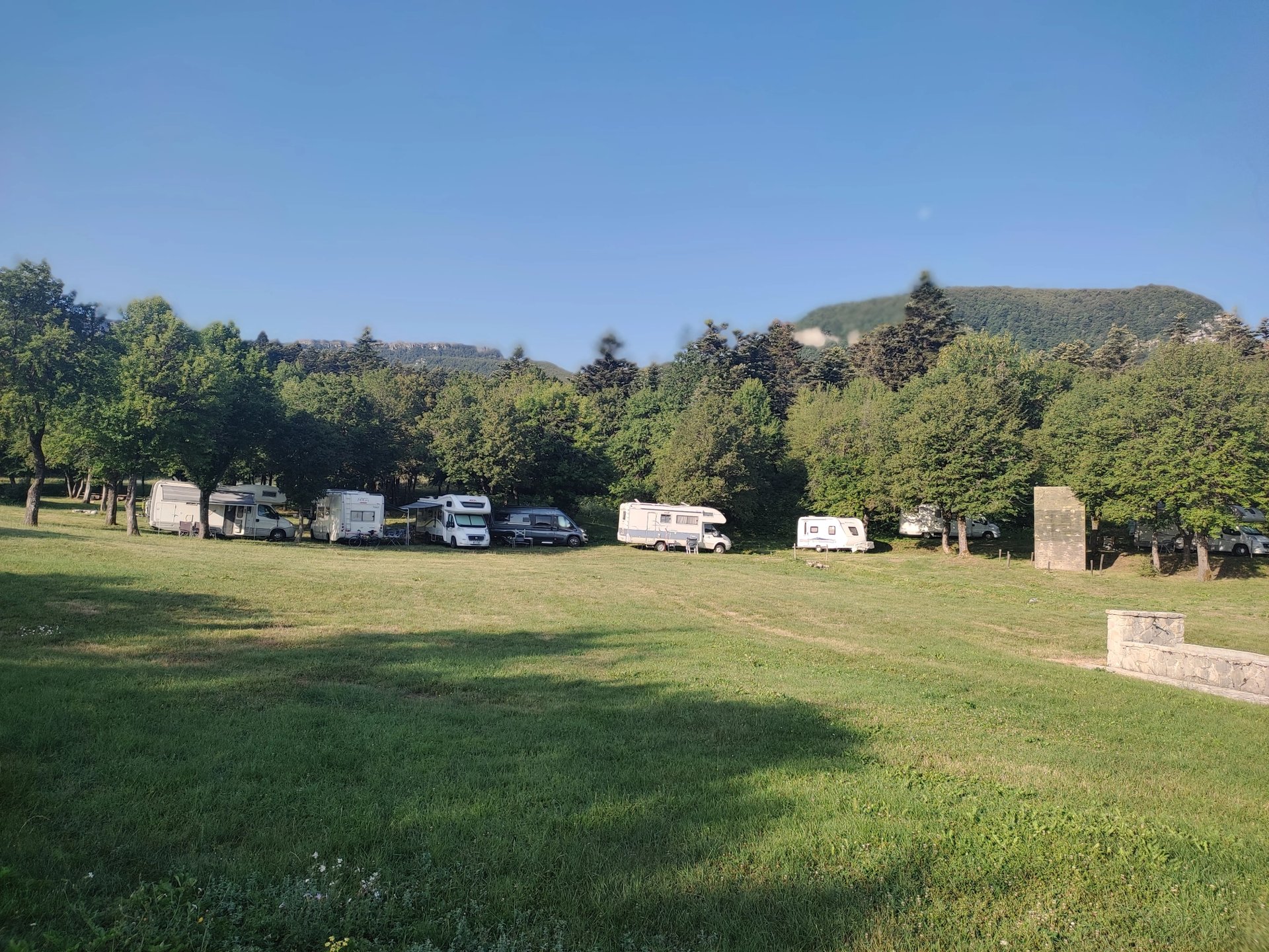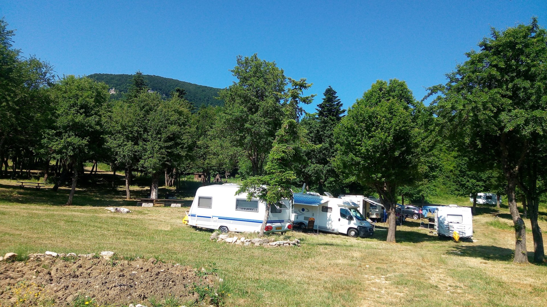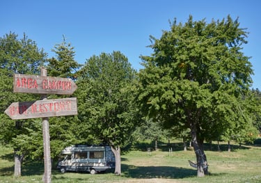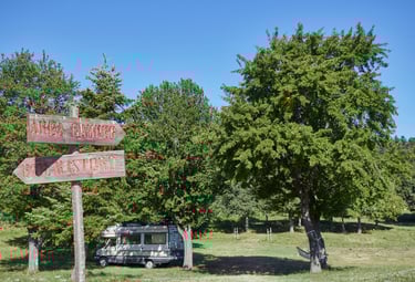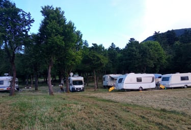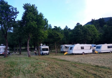 Piazzole spaziose perfette per camper, caravan e tende, immerse nell'ombra naturale degli abeti.