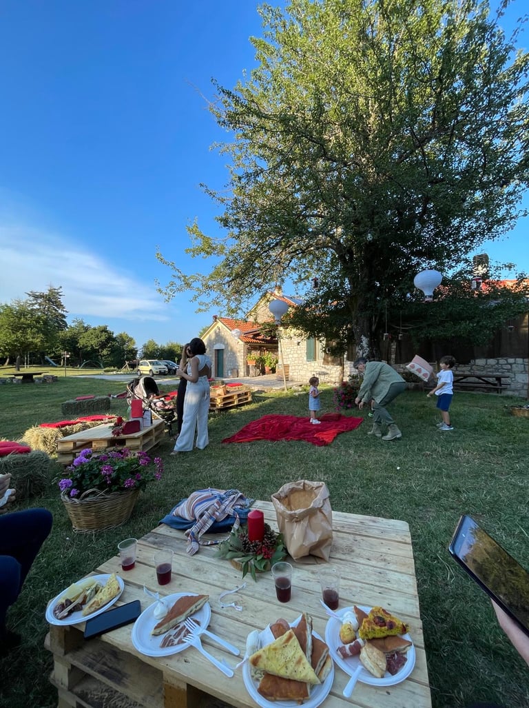 Un tavolo apparecchiato nella natura, ingredienti che sanno di terra e la gioia di ritrovarsi finalmente all'aria aperta.